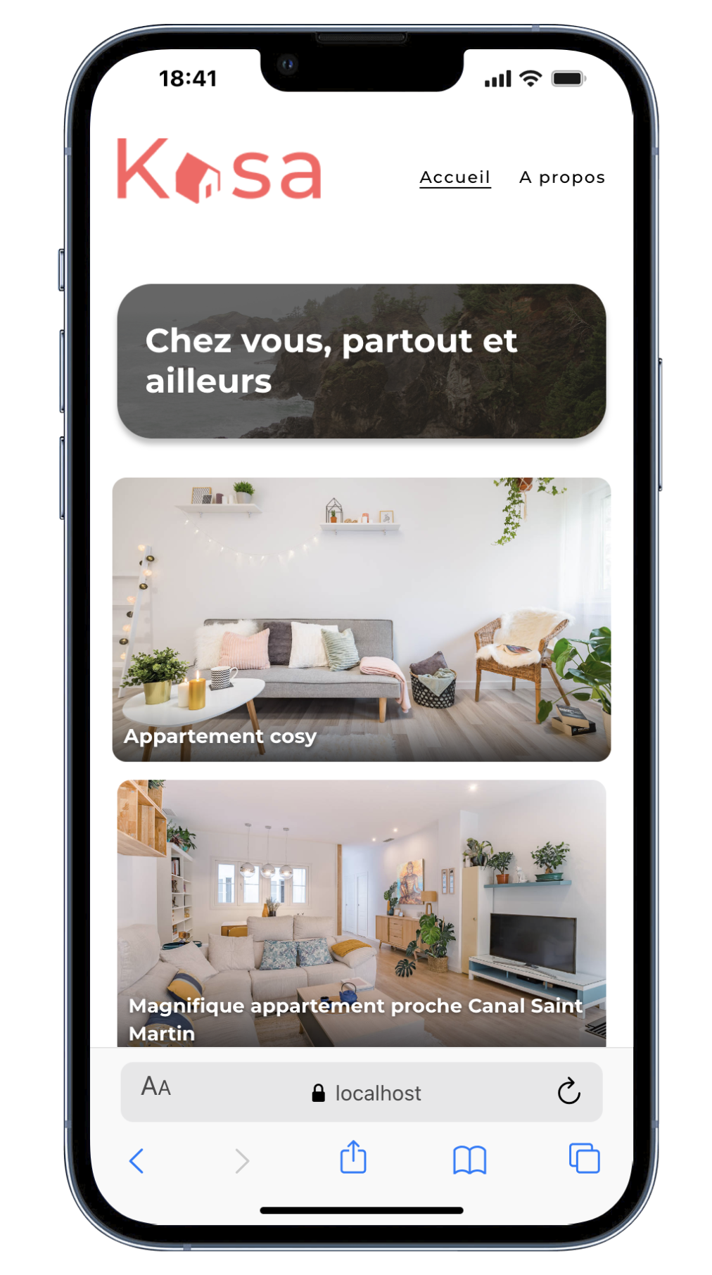 Kasa transforme la recherche de logement avec une interface réactive développée via React et Vite. Le design, conçu avec Figma et Sass, assure une expérience utilisateur fluide et responsive. L'application se distingue par sa rapidité et son accessibilité, promettant des recommandations personnalisées futures pour affiner les recherches et améliorer l'expérience utilisateur. La flexibilité est au cœur, optimisant l'application sur tous types d'appareils.